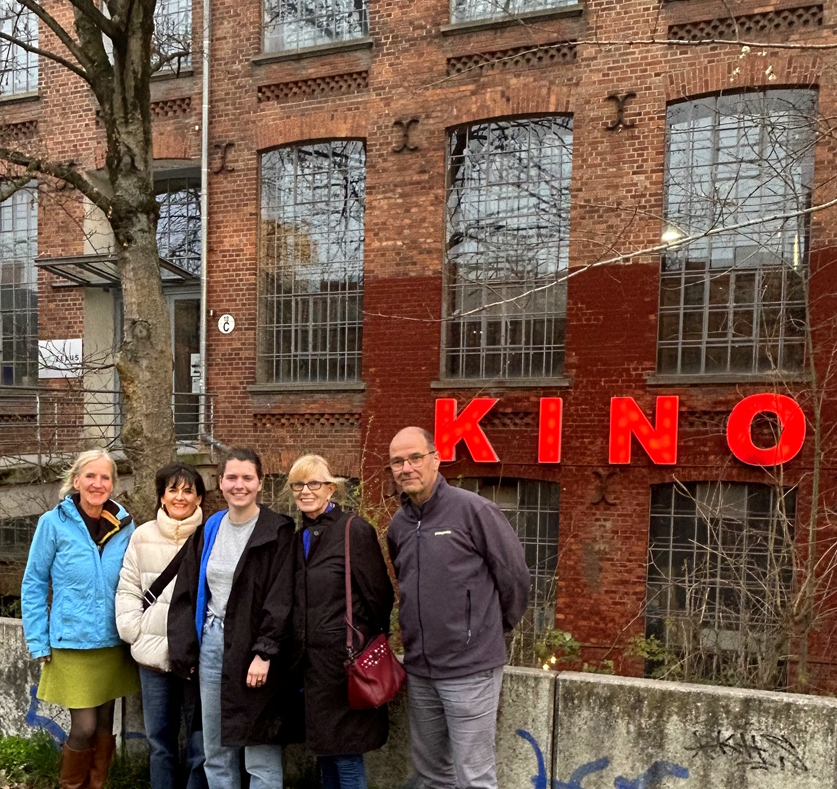 Vor dem Luru-Kino, v.l.: Eva Stegen, Caroline Michel-Aguirre, Clara Stoll, Maureen Kearney, Christoph Schottes Foto: © IG Metall Leipzig